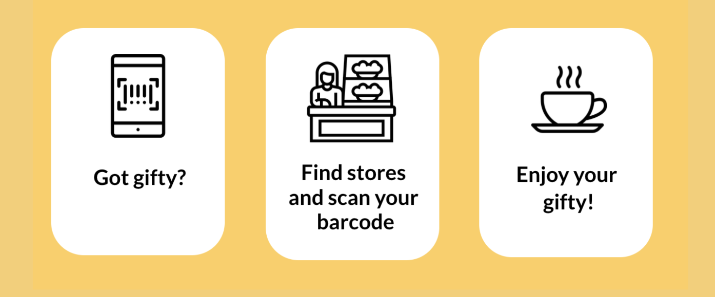 Gifty is a digital platform to give gifts that send barcodes which a receiver claims. Works anytime and anywhere.