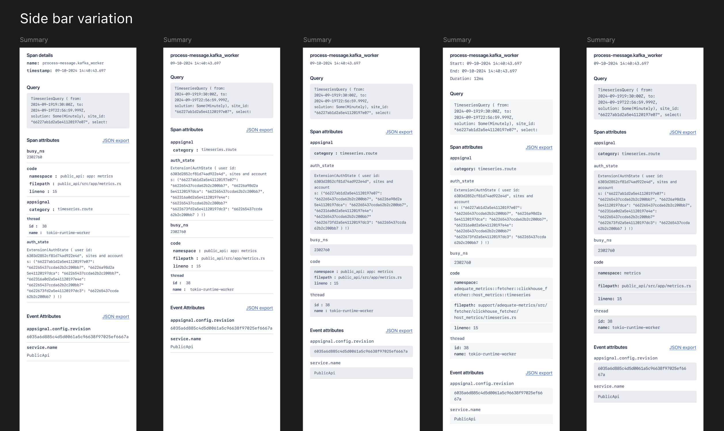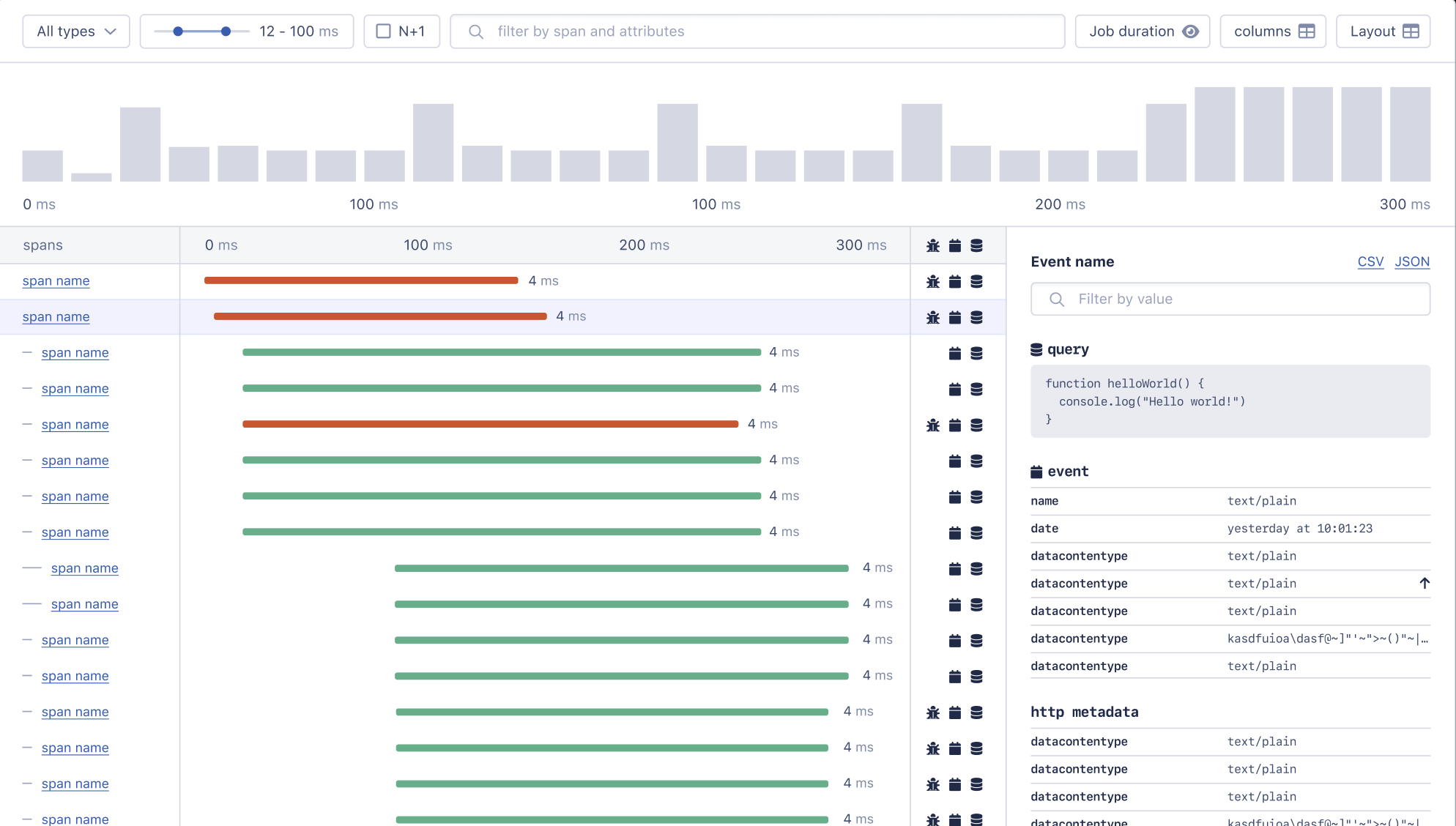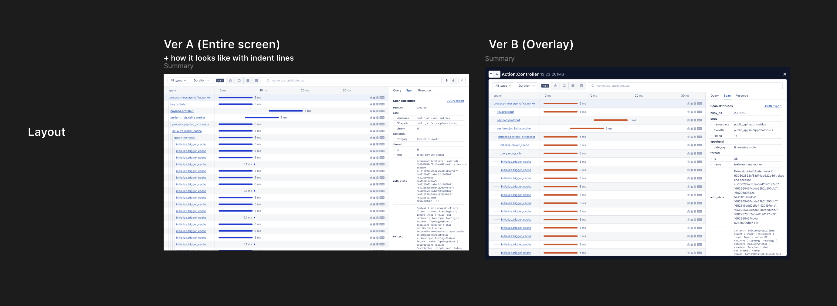 Next, we started listing the detailed information contained in each tracing timeline row (we call it a “span”).