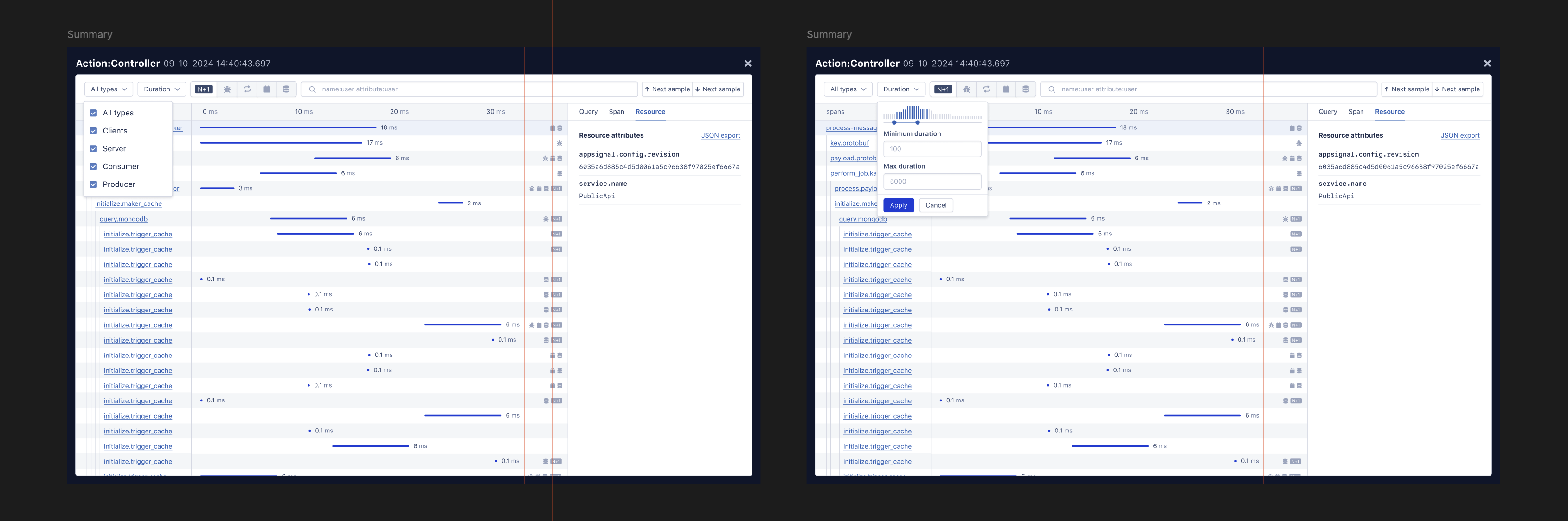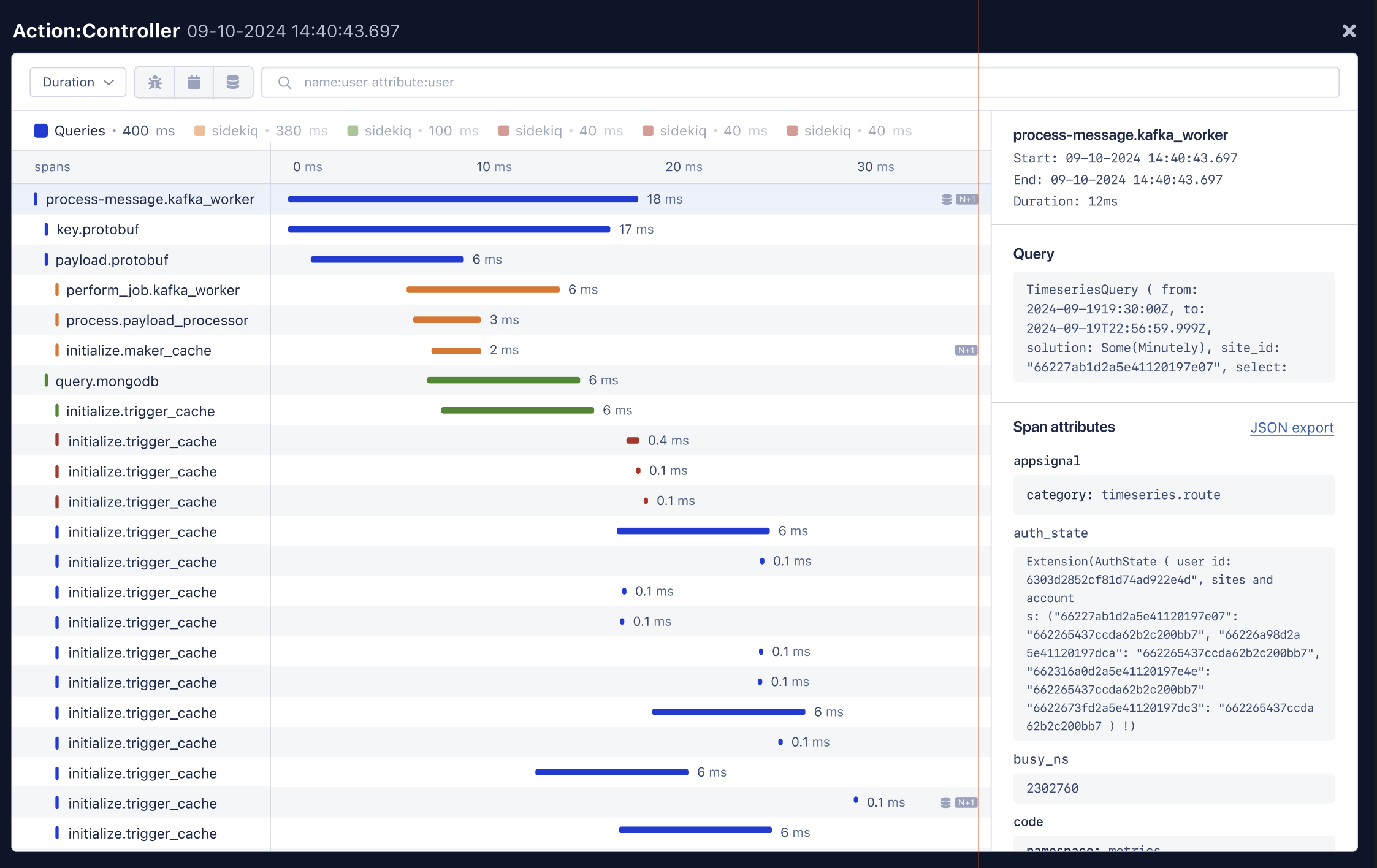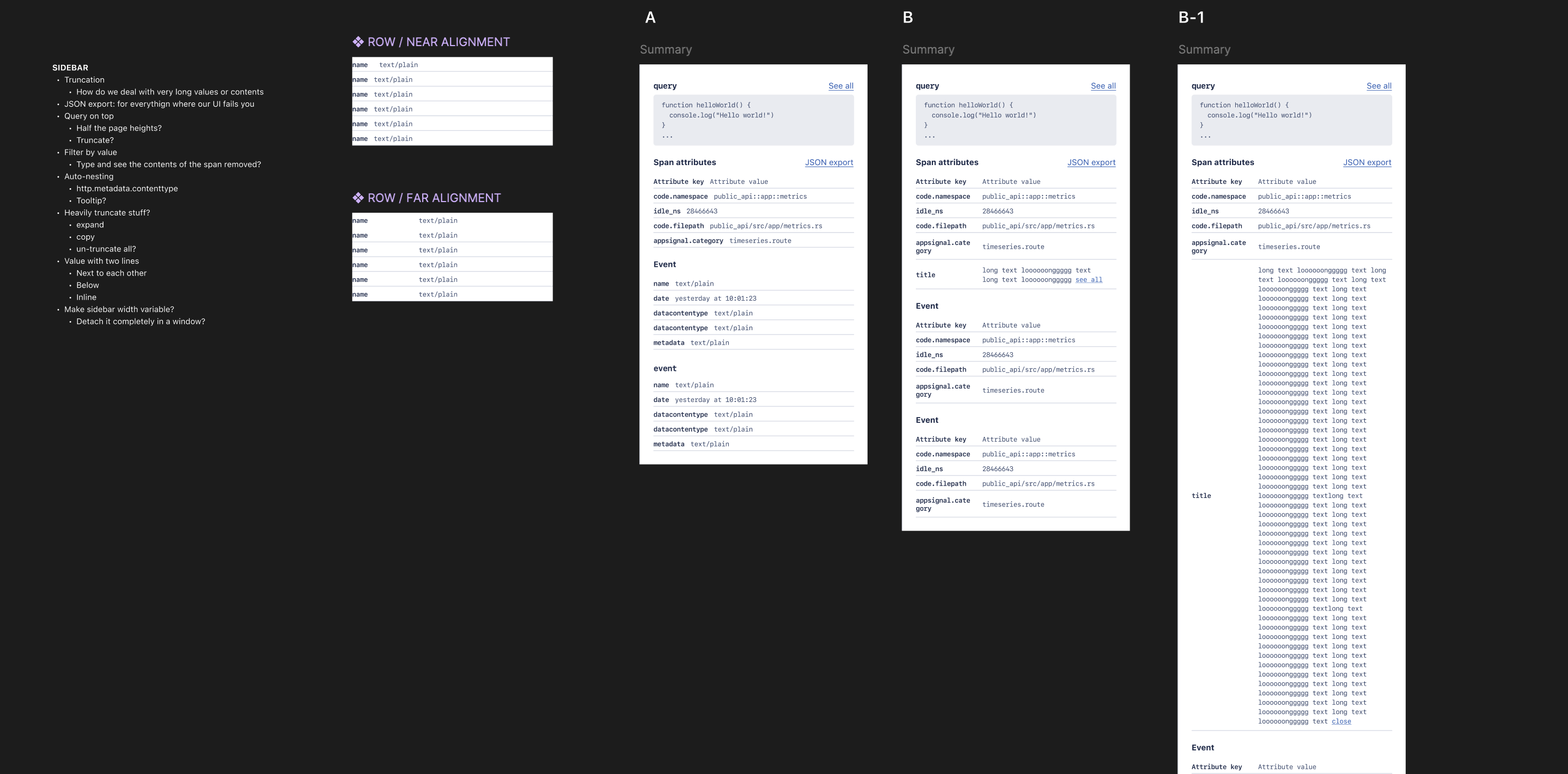 Next, we started listing the detailed information contained in each tracing timeline row (we call it a “span”).