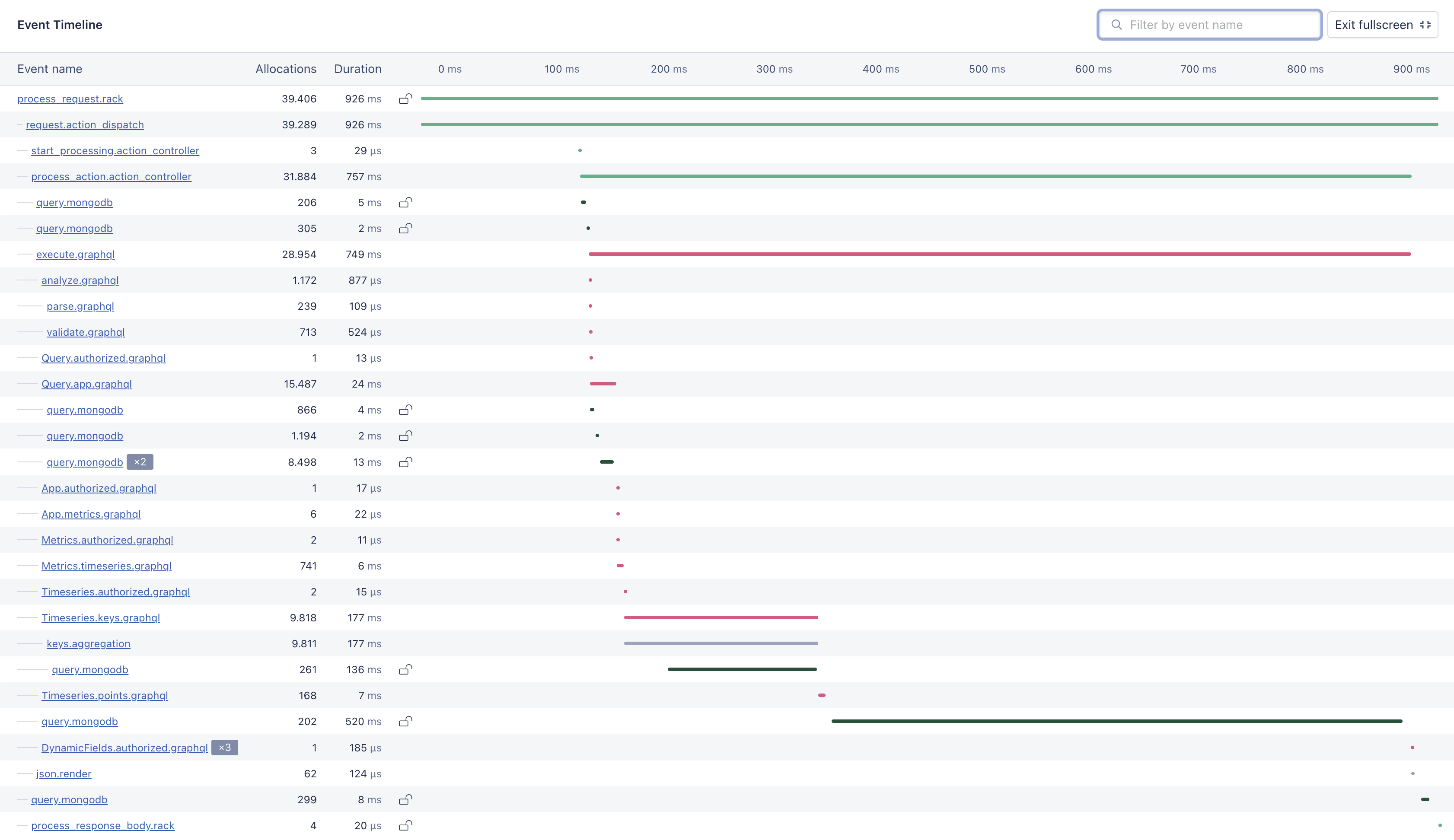 A tracing timeline shows the entire journey of a request across multiple services or components in chronological order, helping you quickly identify where the problems, context, and errors are for easier debugging.