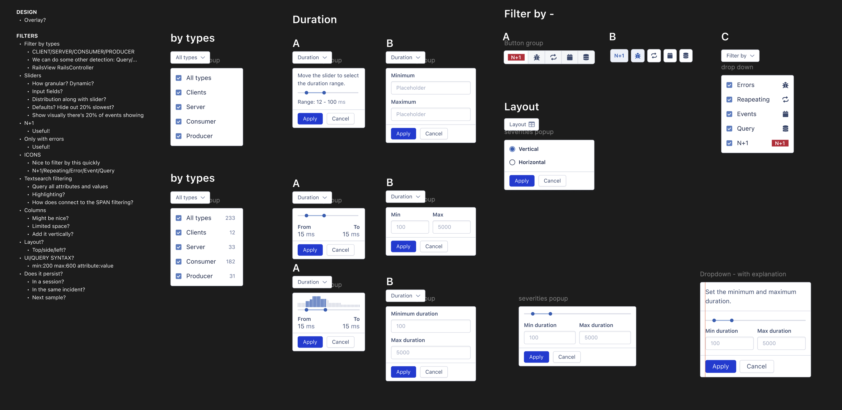 Since AppSignal has a solid design system, I was able to quickly build mockups using existing components instead of wireframes. Using the concrete ideas we’ve developed, we discuss with developers which types of filters would work best.