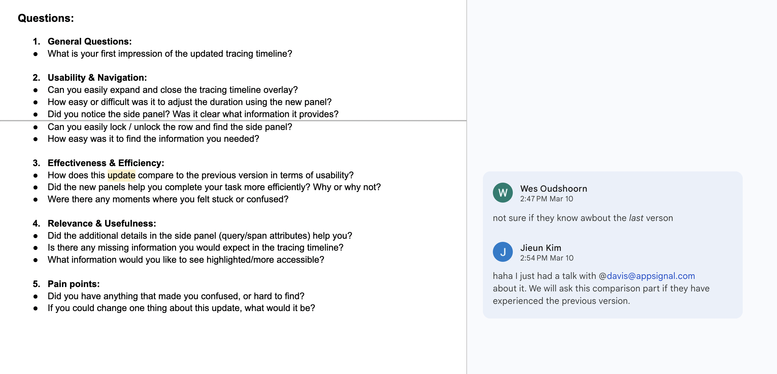 Before the test, we clarified what we wanted to learn and came up with specific questions to help uncover any pain points.